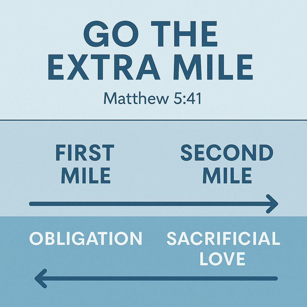In Jesus’ day, this command would have shocked His listeners. Roman law allowed soldiers to force civilians to carry their gear for one mile. It was unfair, inconvenient, and often humiliating. Yet Jesus says, “Don’t just go one mile. Go two.”